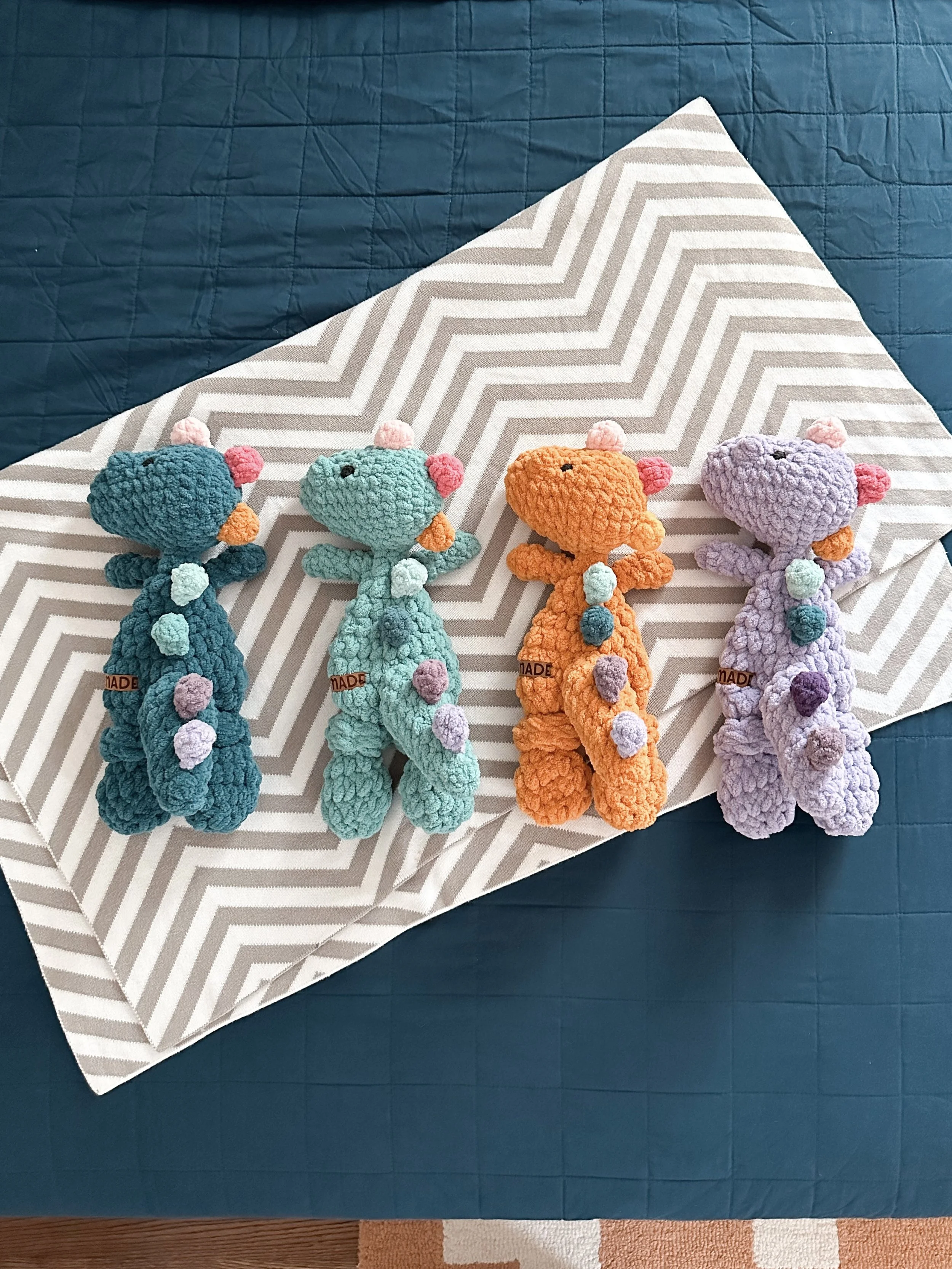 “Our sweet dino is a family fav… he is always cuddling with someone on the couch!”